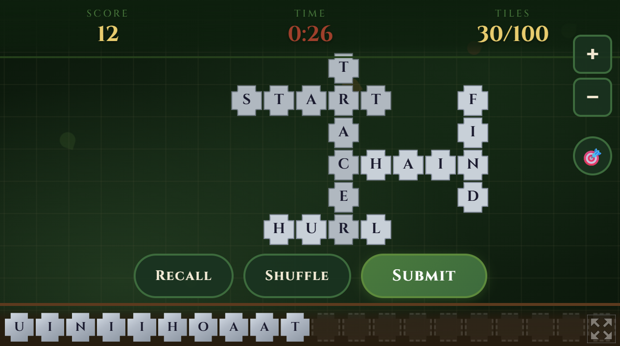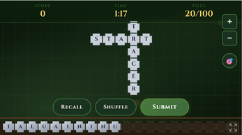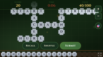 WordSpree is a freestyle letter/word game. Words must be at least 3 letters. you can change the position of your letters infinitely, but you can only update your score with board full of legit words. You must play 100 tiles on the board to win, and you must beat the clock. Long words give the highest scores. Online Worldwide Leaderboard! Do you have what it takes to be the greatest ever?